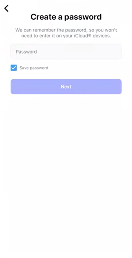 Step 4: Enter your new profile name and password, then tap Next